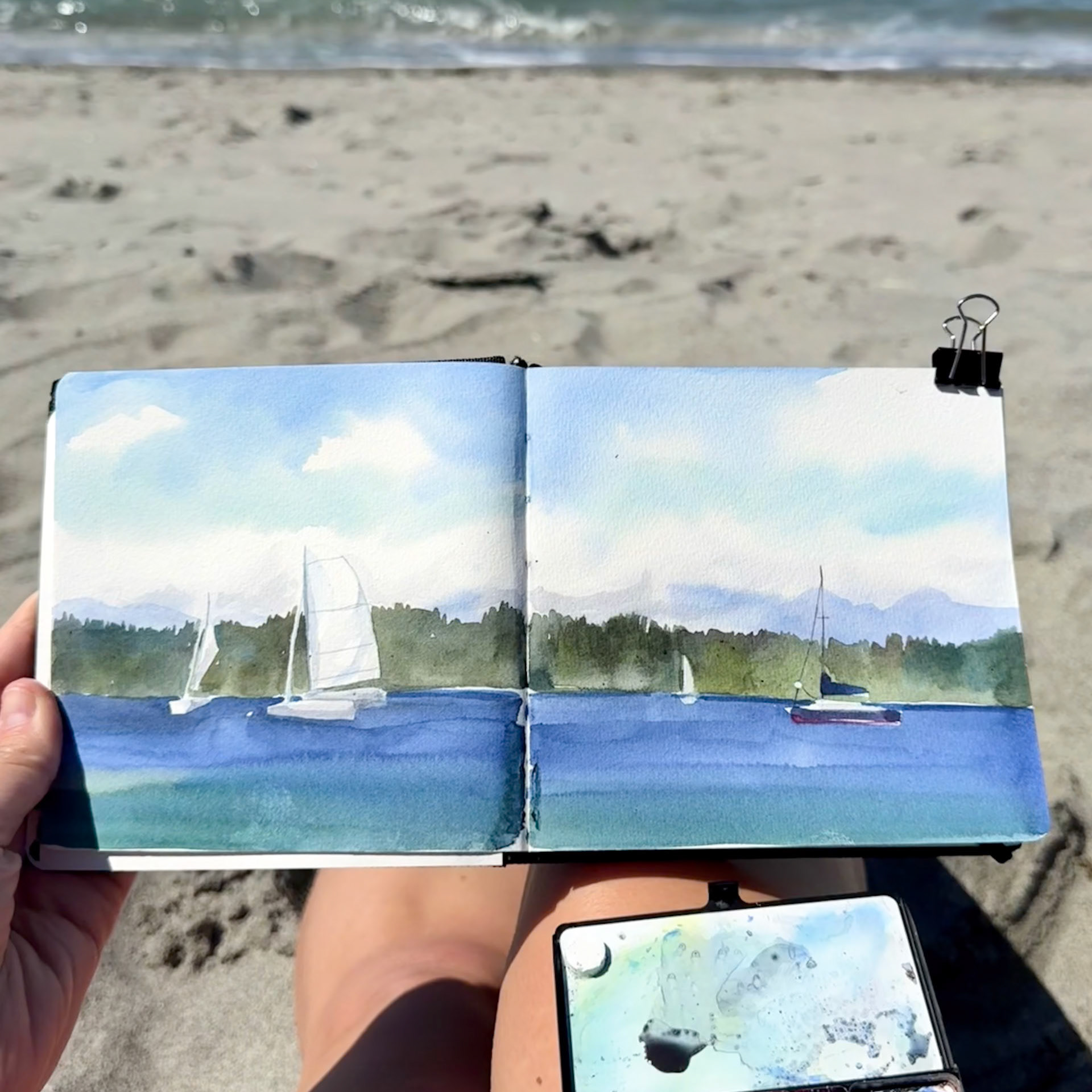 Below are some of the plein air and urban sketches I've done over the years. Most often I plant myself by the water and paint a seascape but I also enjoy painting during a rest from a bike ride or a hike, with my local Urban Sketchers group, or anywhere I have a few minutes to spare.